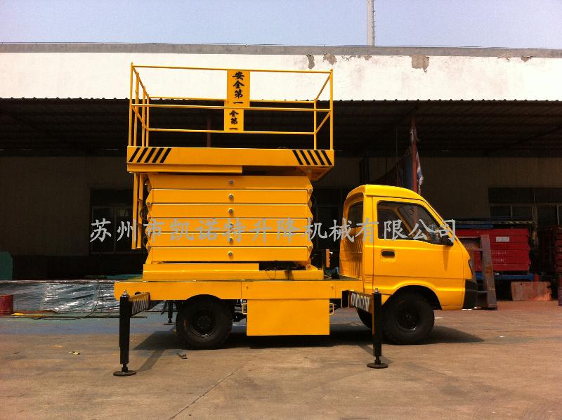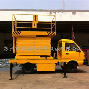 汽車載式液壓升降平臺(tái)是由升降臺(tái)和汽車配套改 裝而成的。它接取汽車引擎動(dòng)力,實(shí)現(xiàn)升降臺(tái)的升降功能。適用于大 流動(dòng)量的高空作業(yè)。